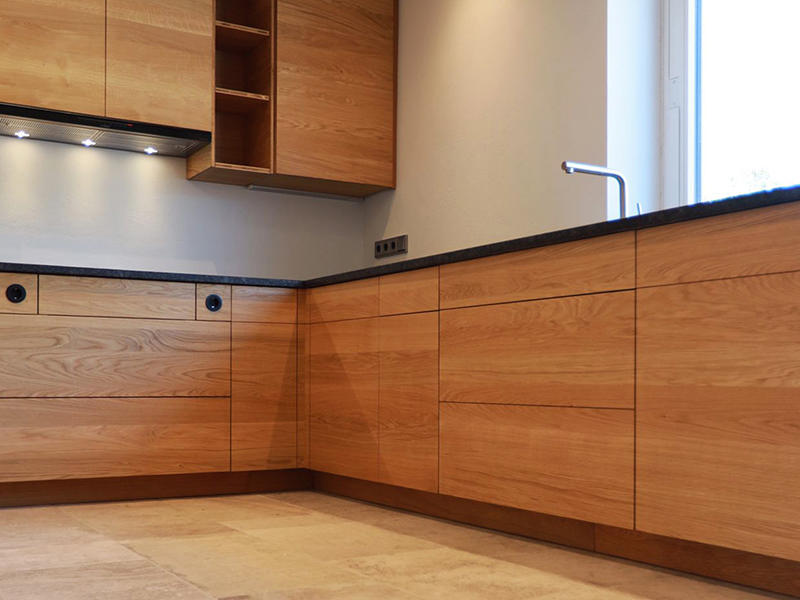 Natürliche Holzoptik oder Hochglanz, wir fertigen Ihre neue Küche in unserer Schreinerei – handwerklich perfekt in Ihrer Materialauswahl und räumlichen Anforderungen.